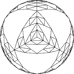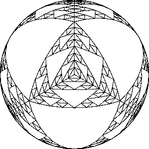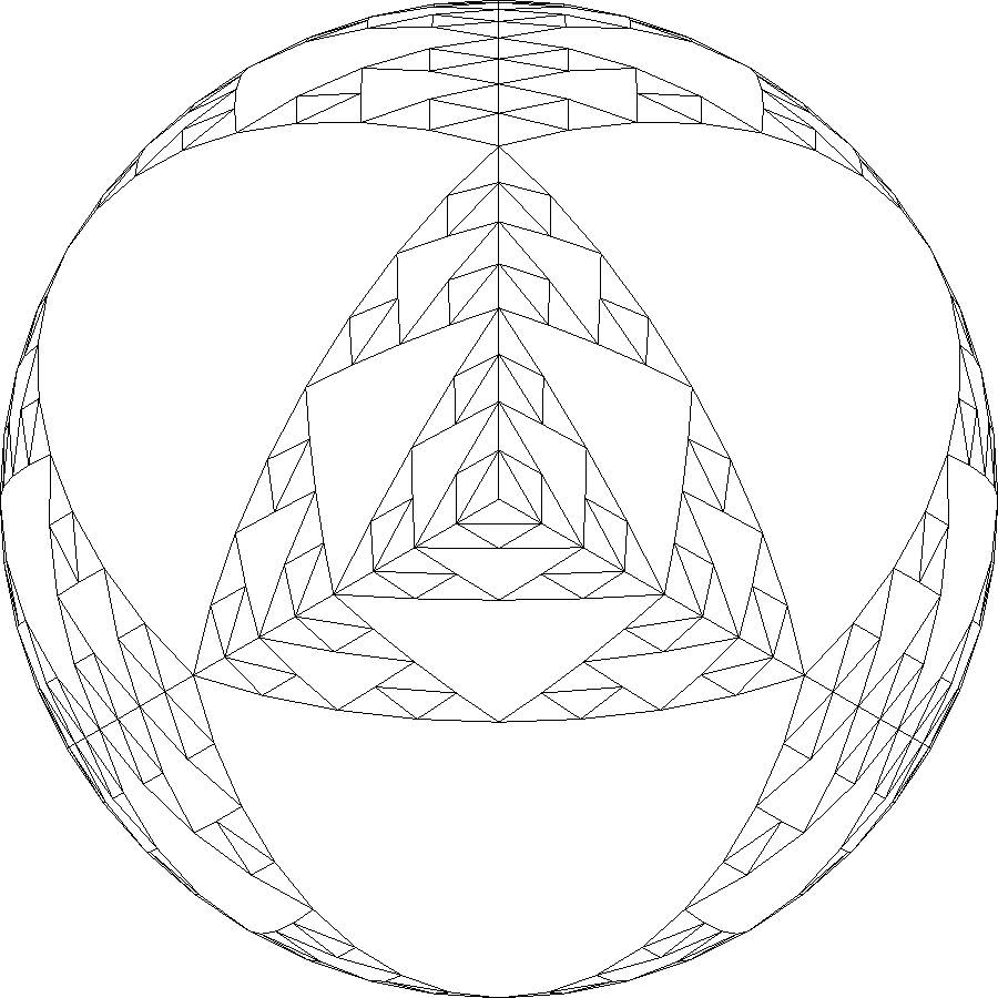I was hacking away on a program that generates geodesic dome geometry, and for debugging purposes wrote some code that outlined all the faces on the dome. While looking at the output, it occurred to me that it looked like a sheet from a coloring book. I played with it further, and realized that by tweaking the code a little, I could generate Sierpinski triangles mapped onto a sphere.